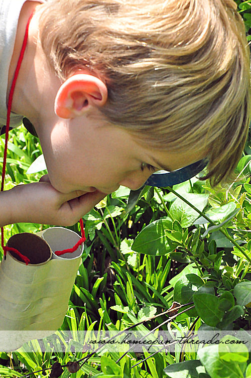 Binoculars: Use your imagination when preparing for this adventure. With a masking tape, a hole punch, toilet tissue tubes and yarn you can whip up a set of binoculars for viewing. You may already have a magnifying glass or two laying around your house, kids would also love to be able to view specimens up close by putting them in glass jars.